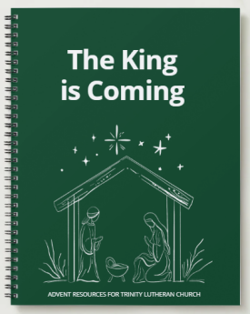 "The King is Coming," Advent workbook is available from the Welcome Center beginning Nov. 29. Trinity is making these books available for a free-will donation. Those who are able are encouraged to give any amount to support the production of the material. Those who cannot are still invited to take a workbook. For transparency sake, these book cost Trinity approximately $8 each in production costs. The workbook is also availble for download to print from home or use on an electronic device.