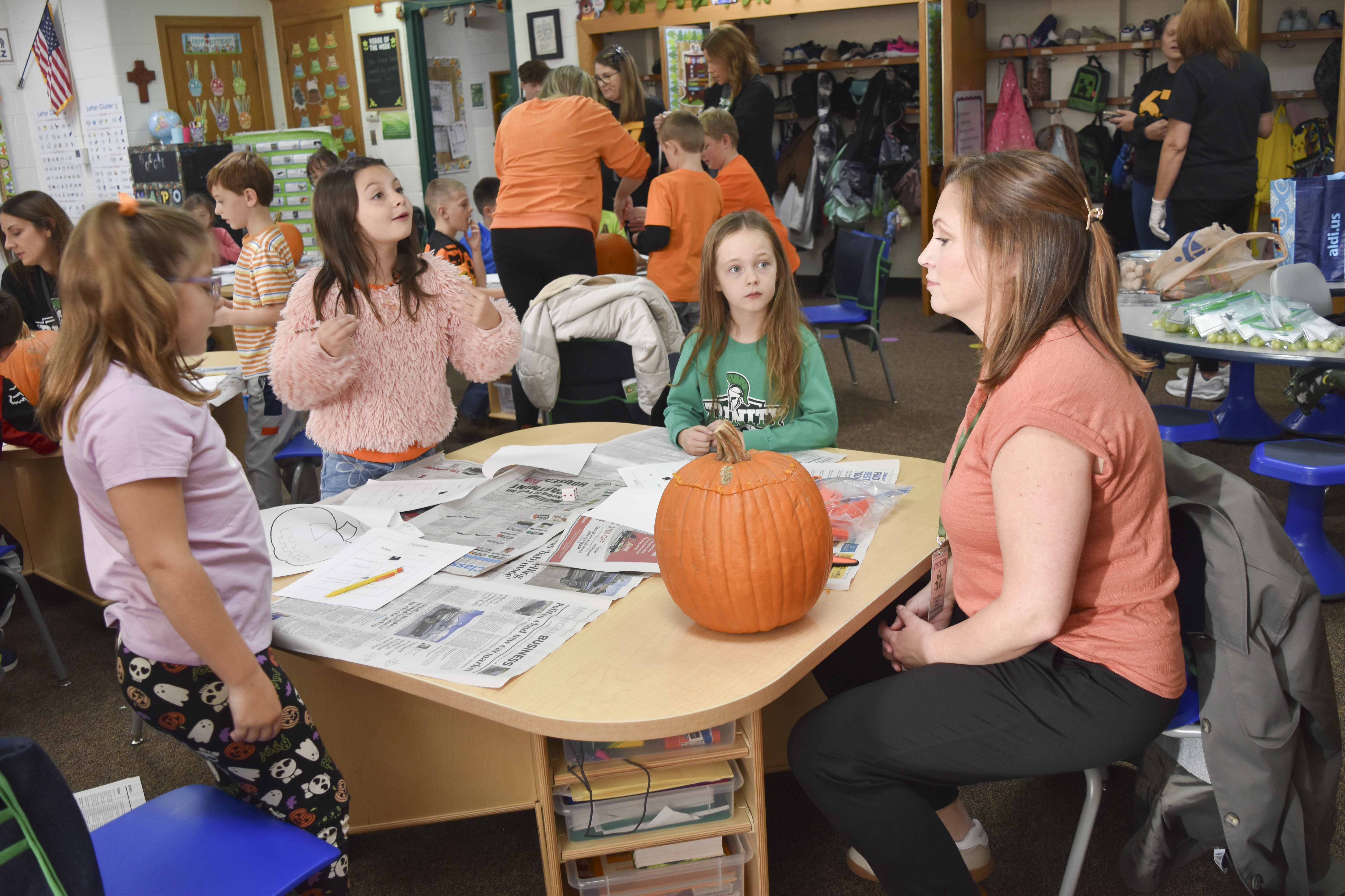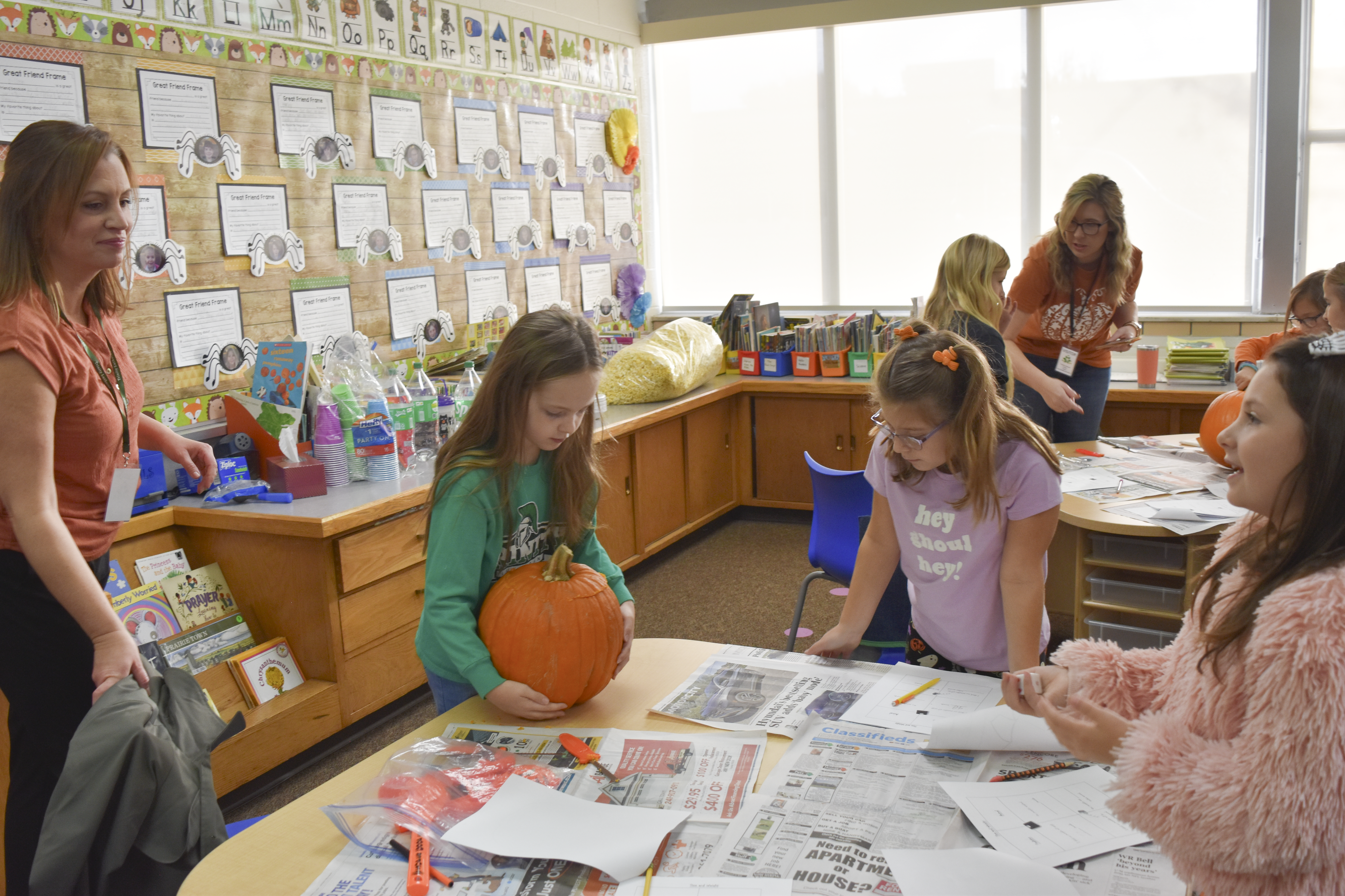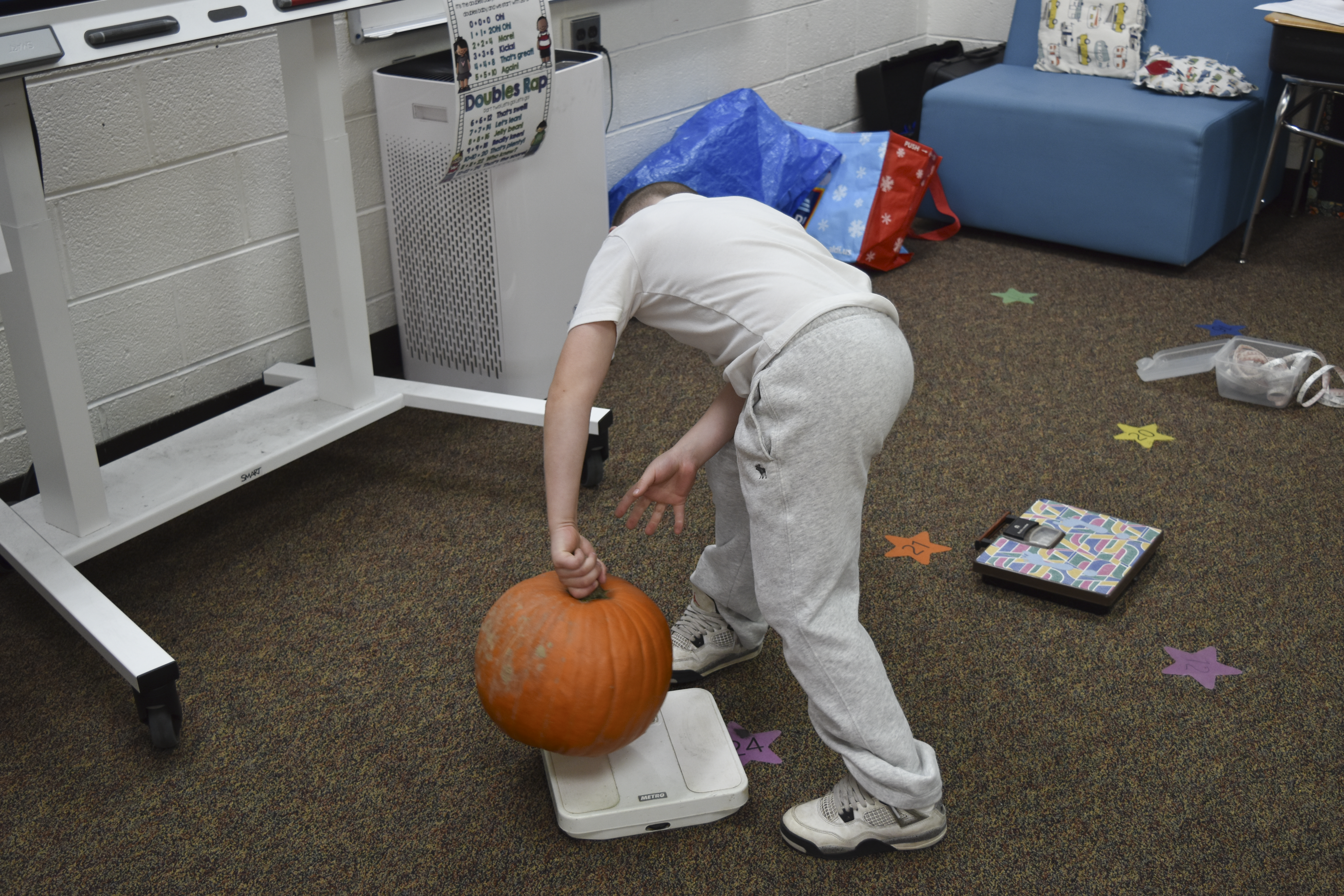 Second graders measured, weighed, sorted and examined pumpkins during teacher Jamie McMahon's annual pumpkin centers project.
