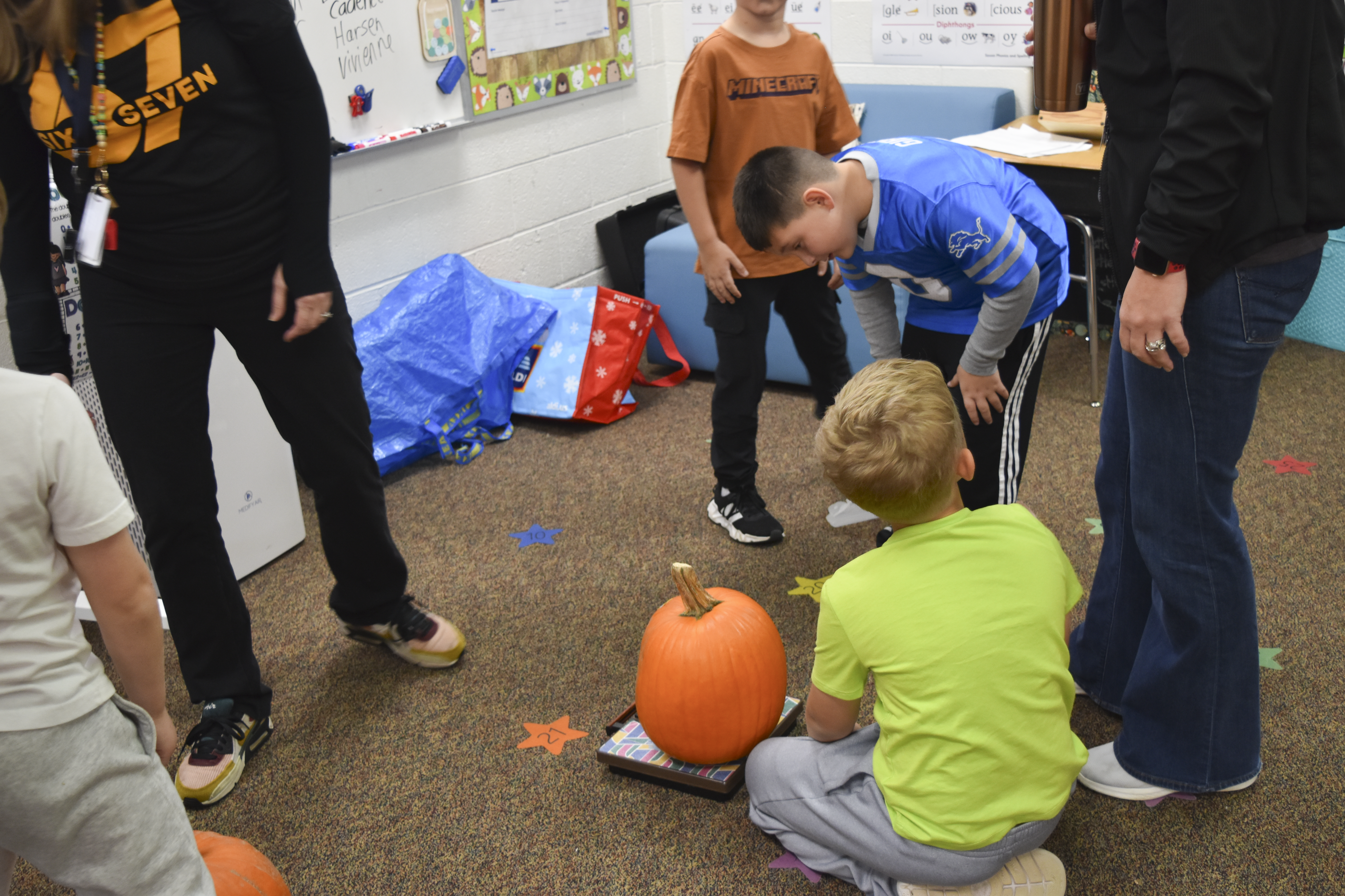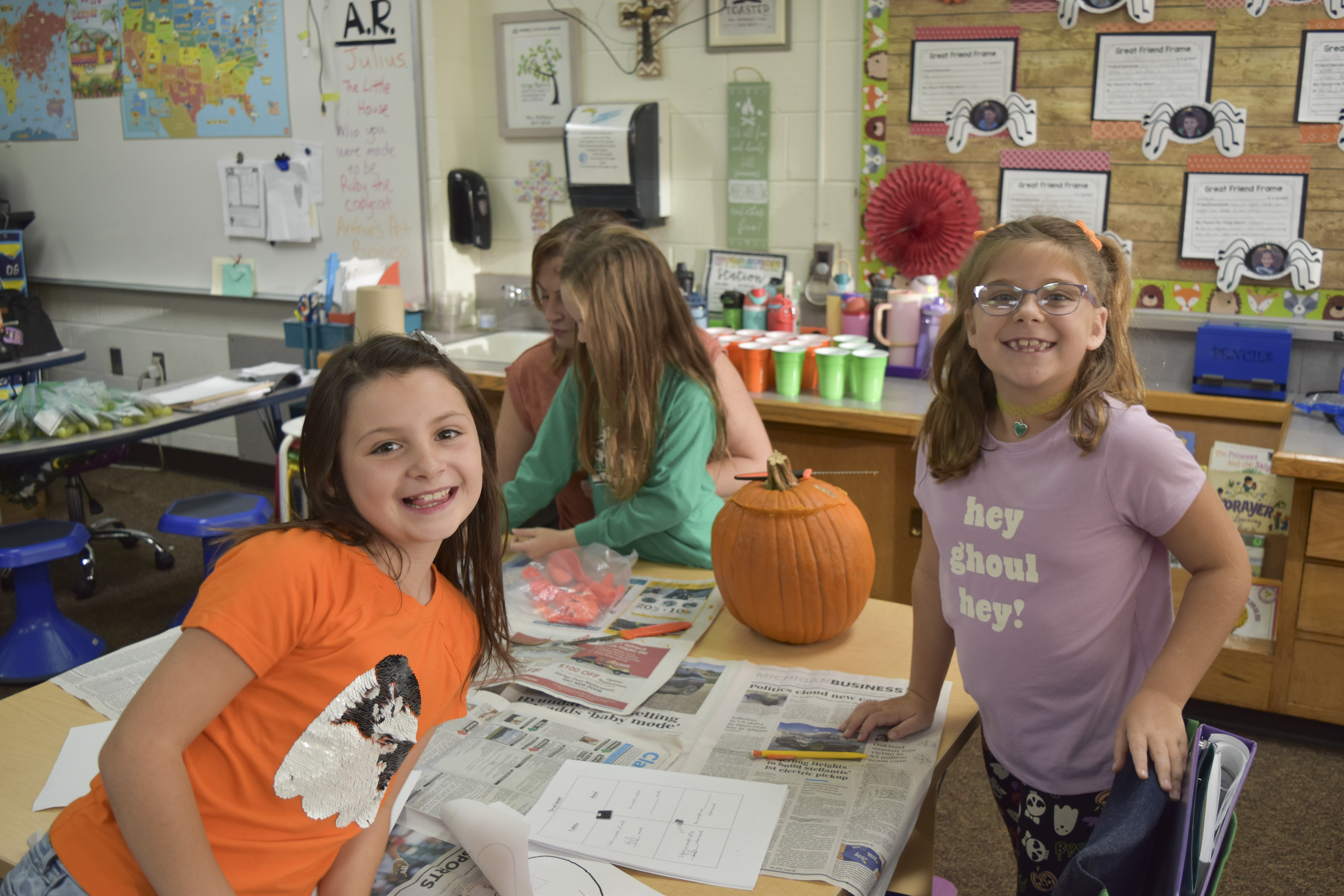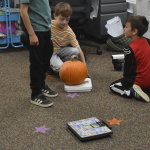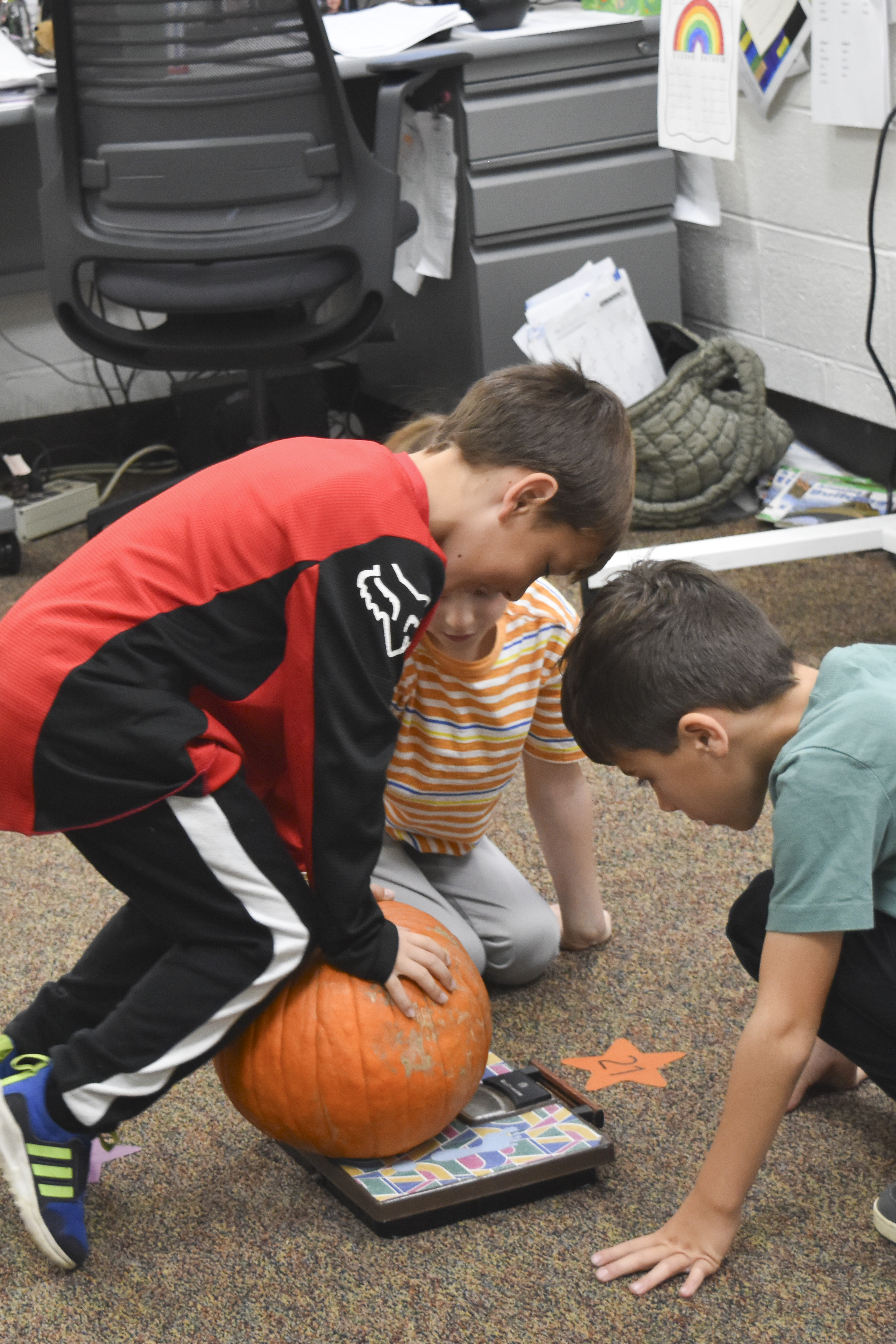 Second graders measured, weighed, sorted and examined pumpkins during teacher Jamie McMahon's annual pumpkin centers project.