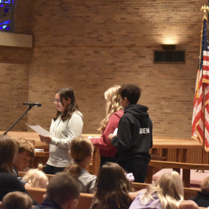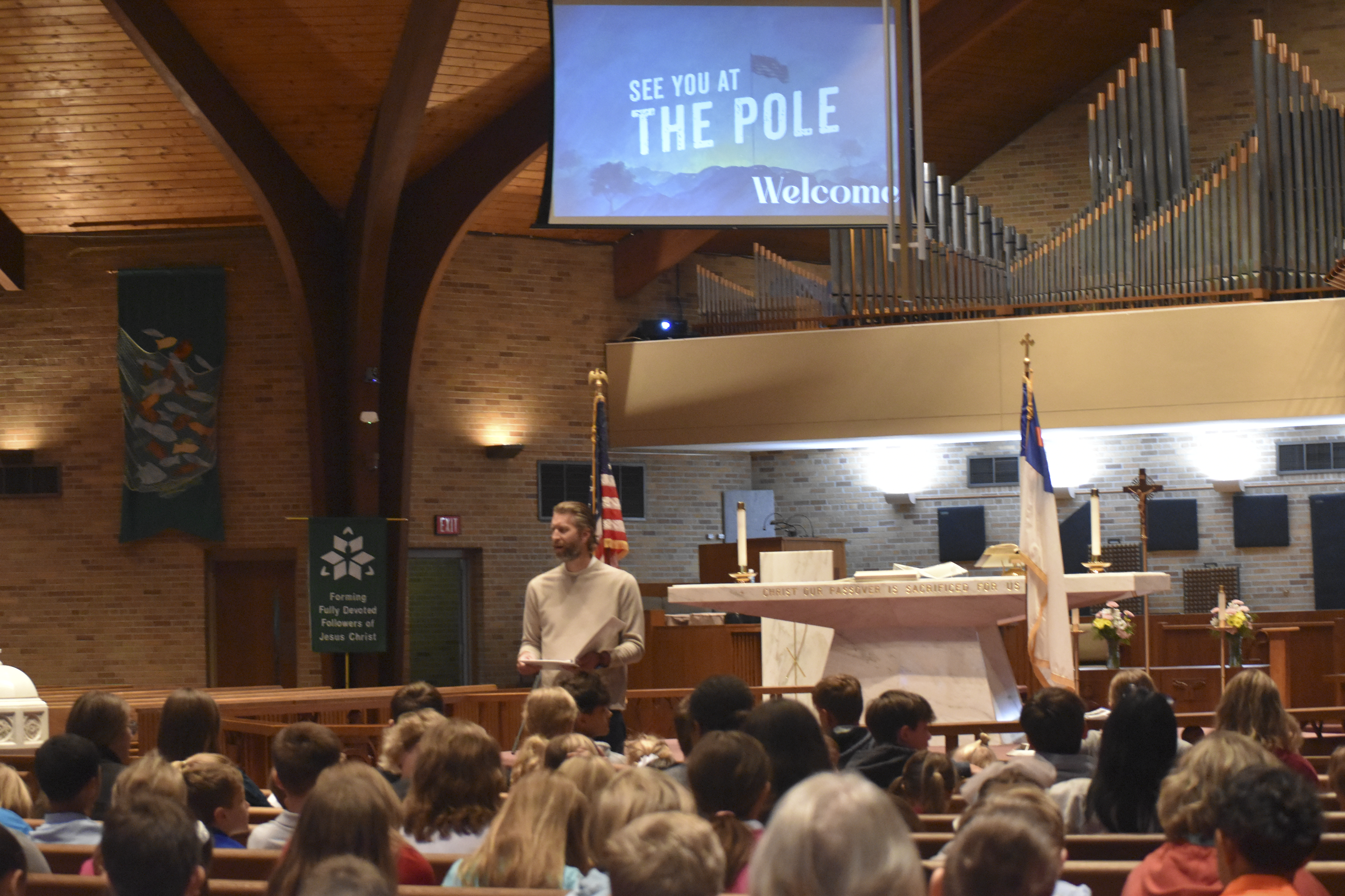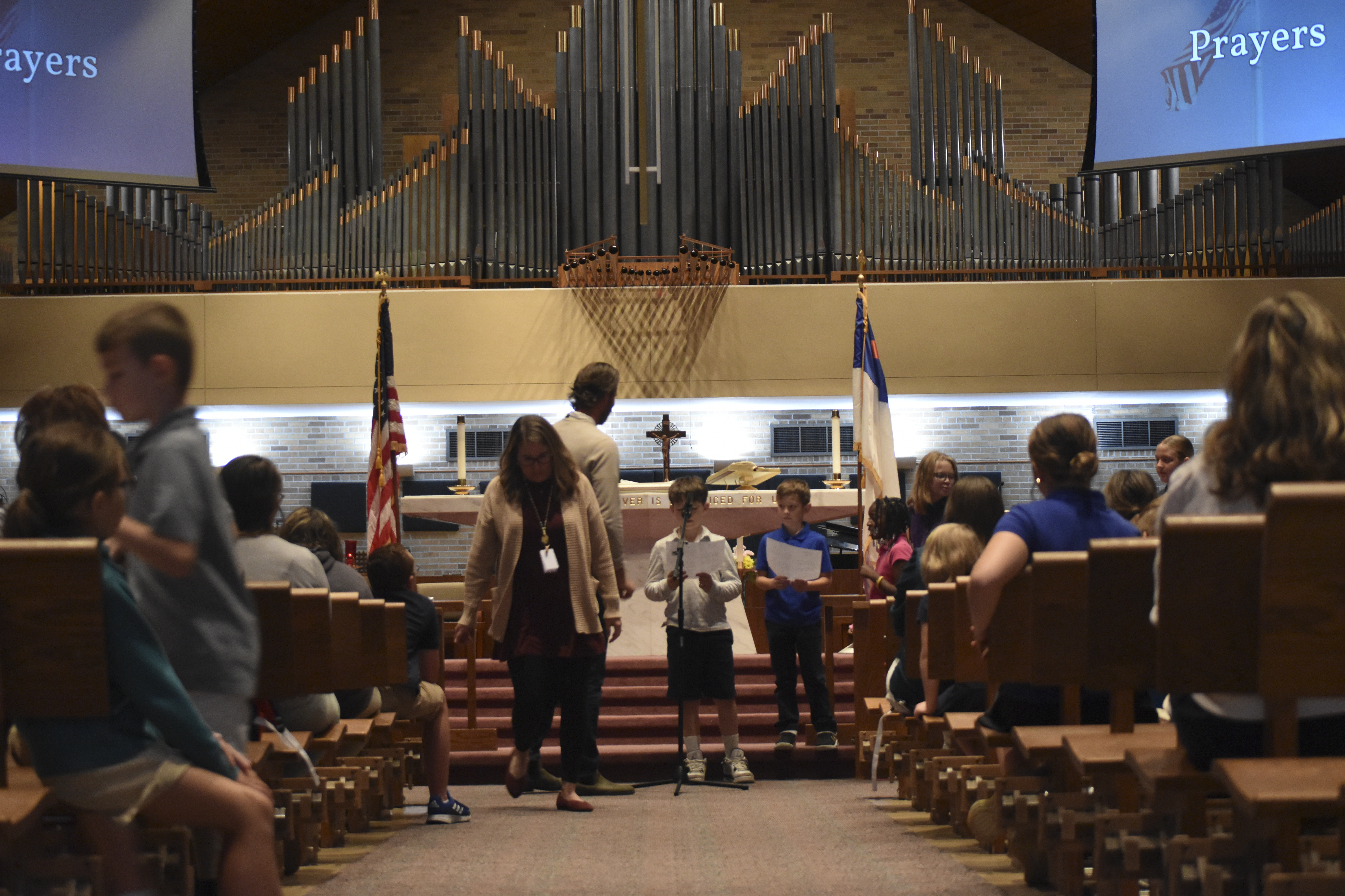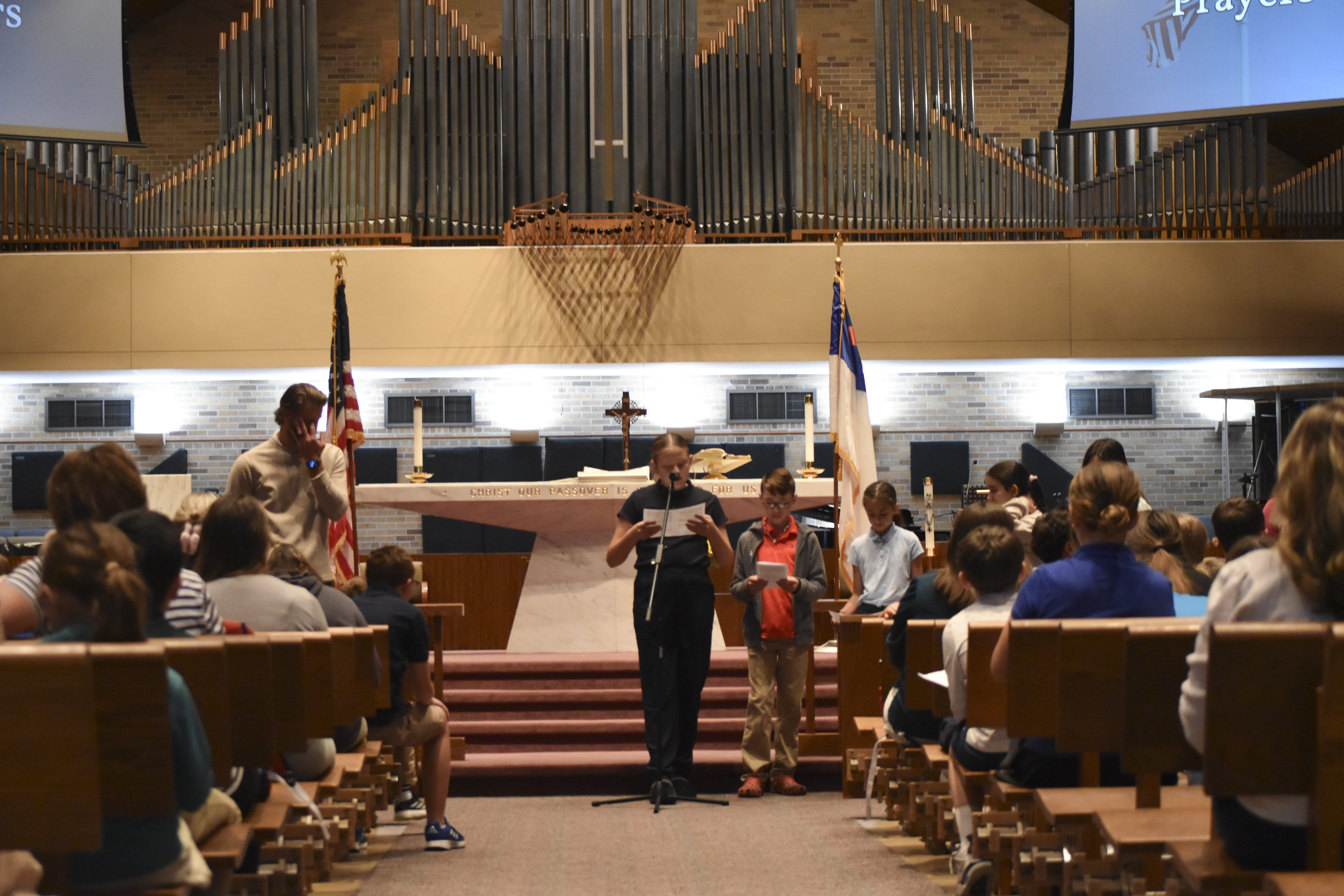 This year was no different, but, due to rain, the event was moved indoors. Students prayed for their friends, family, teachers, school and nation. The honor the flag with the Pledge of Allegience and are reminded that their Lutheran education affords them the right to pray whenever they want, even in the classroom.