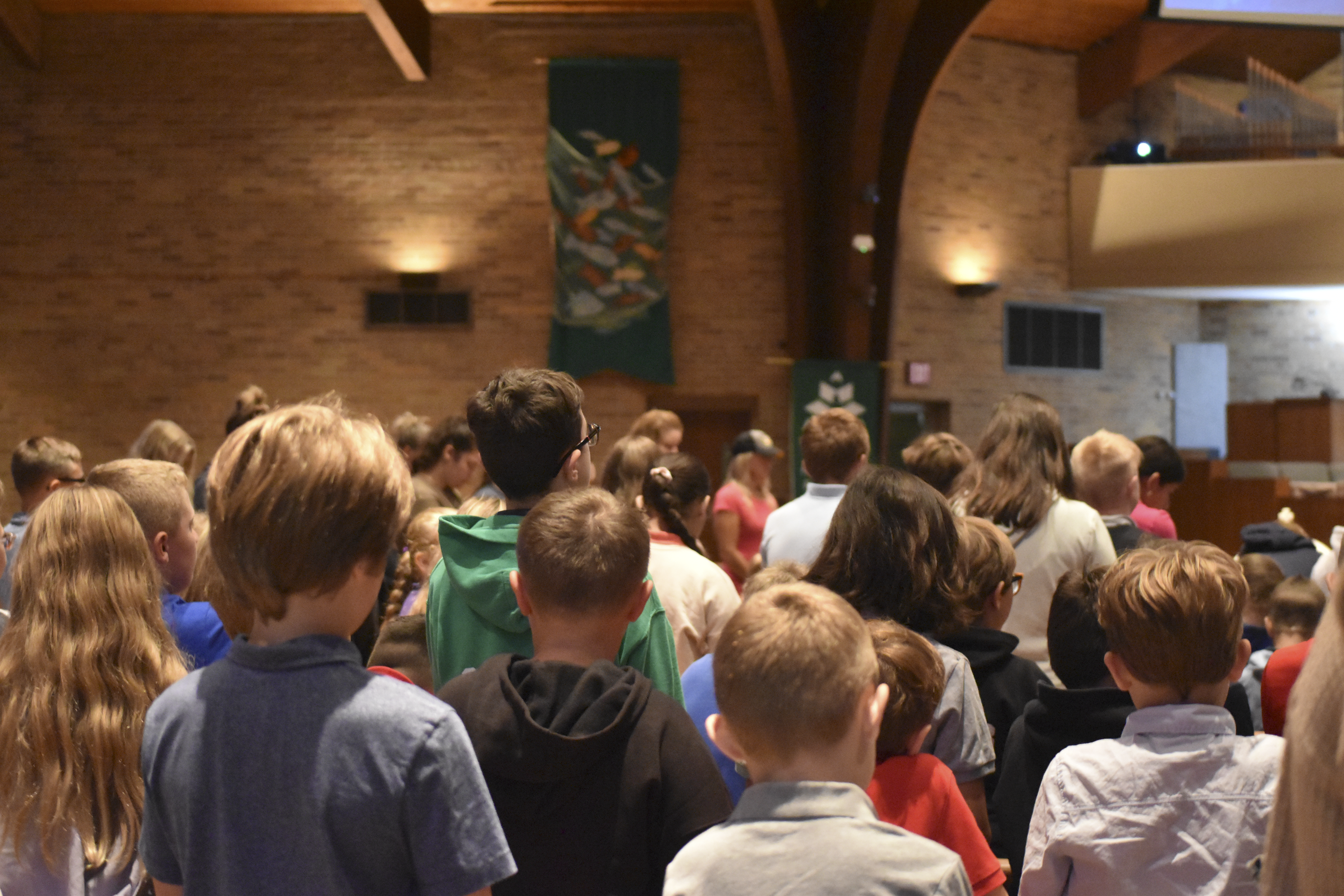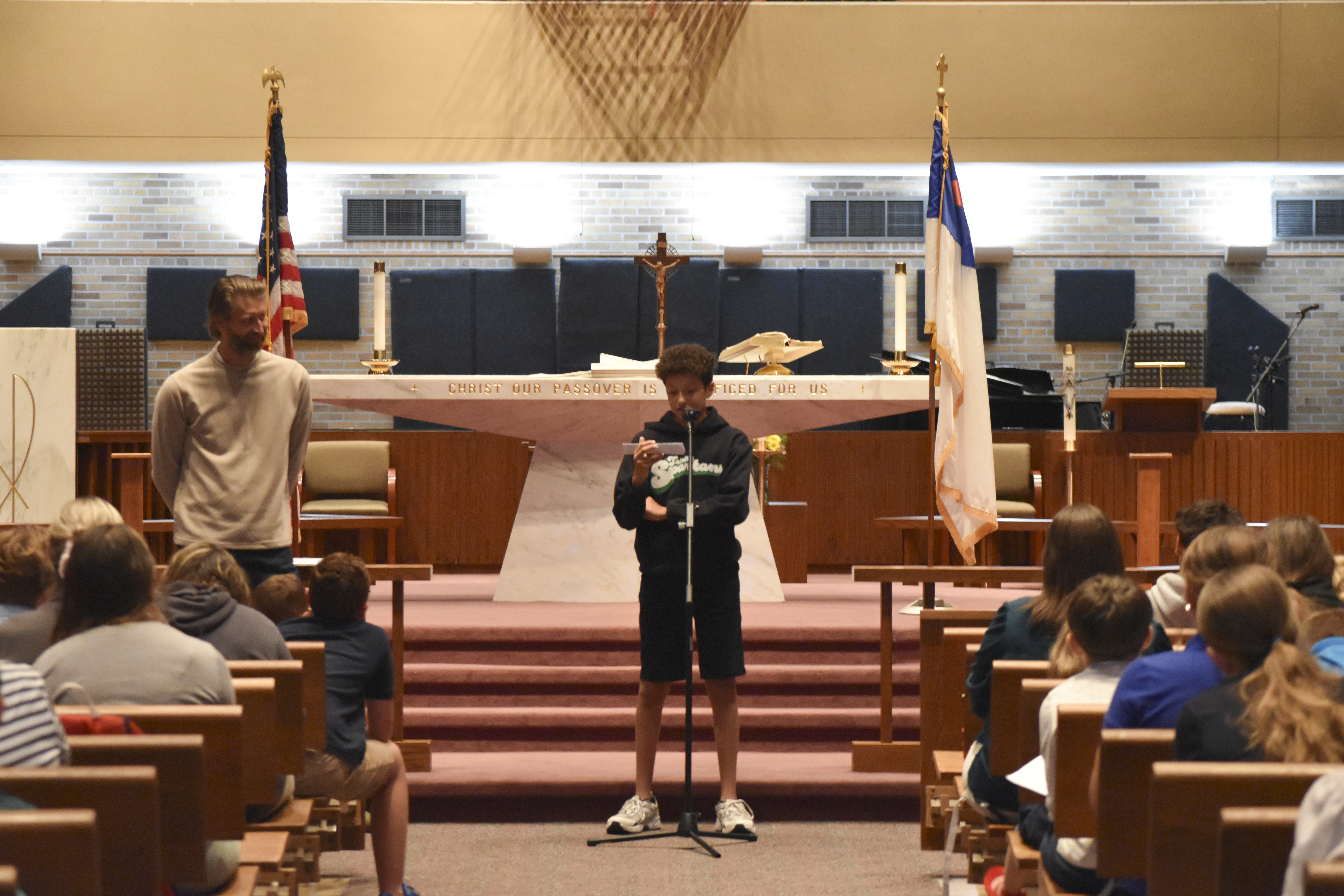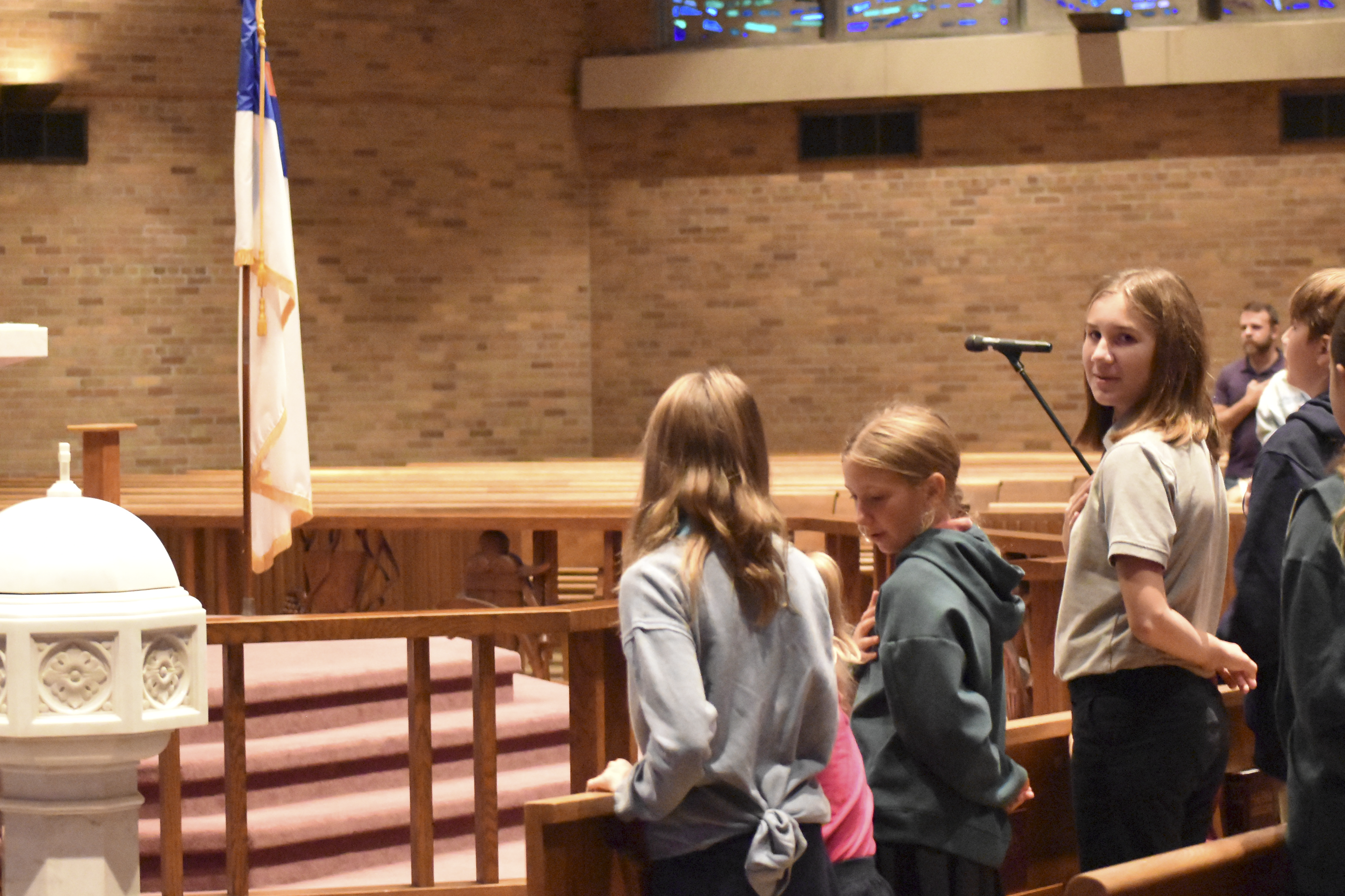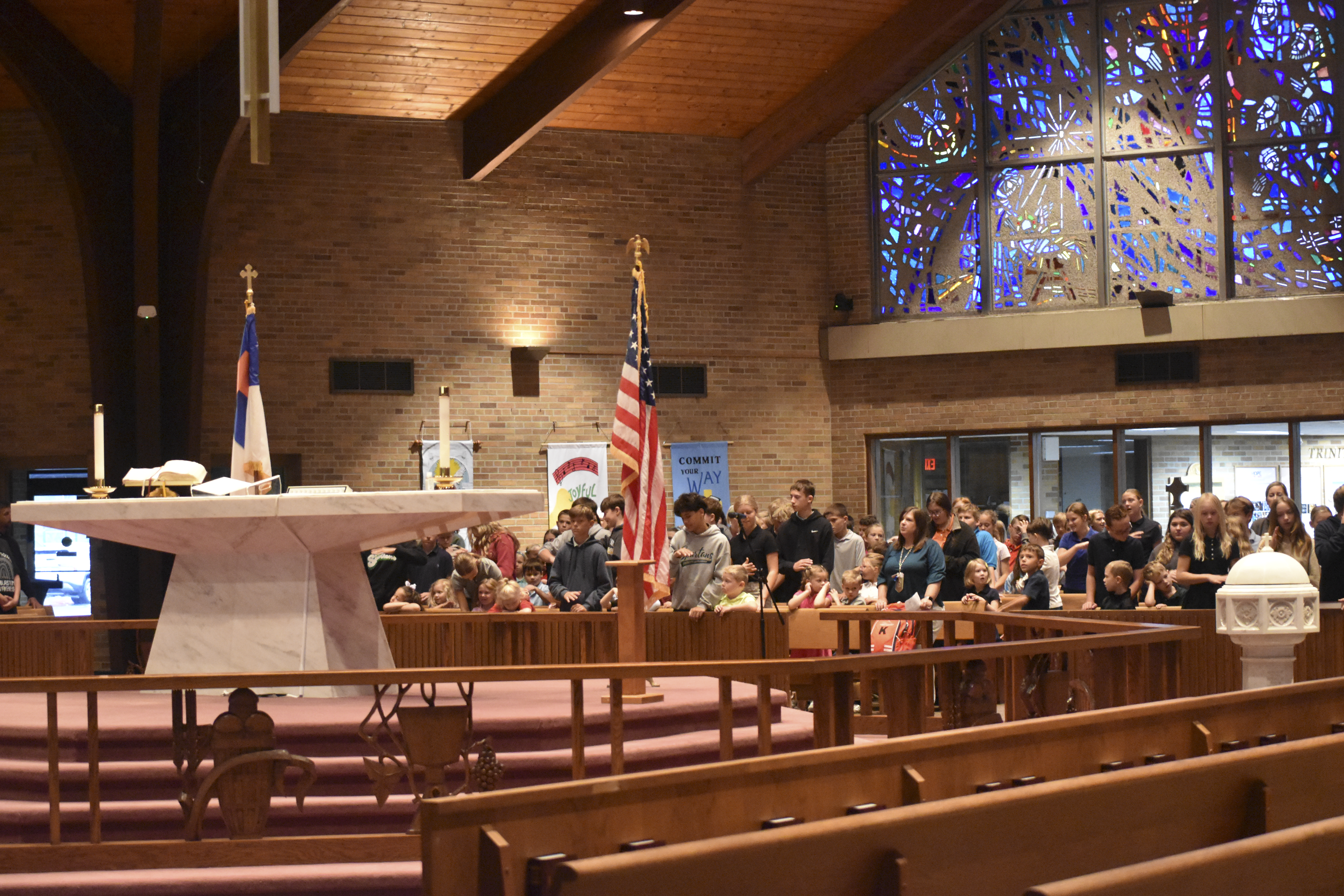 This year was no different, but, due to rain, the event was moved indoors. Students prayed for their friends, family, teachers, school and nation. The honor the flag with the Pledge of Allegience and are reminded that their Lutheran education affords them the right to pray whenever they want, even in the classroom.