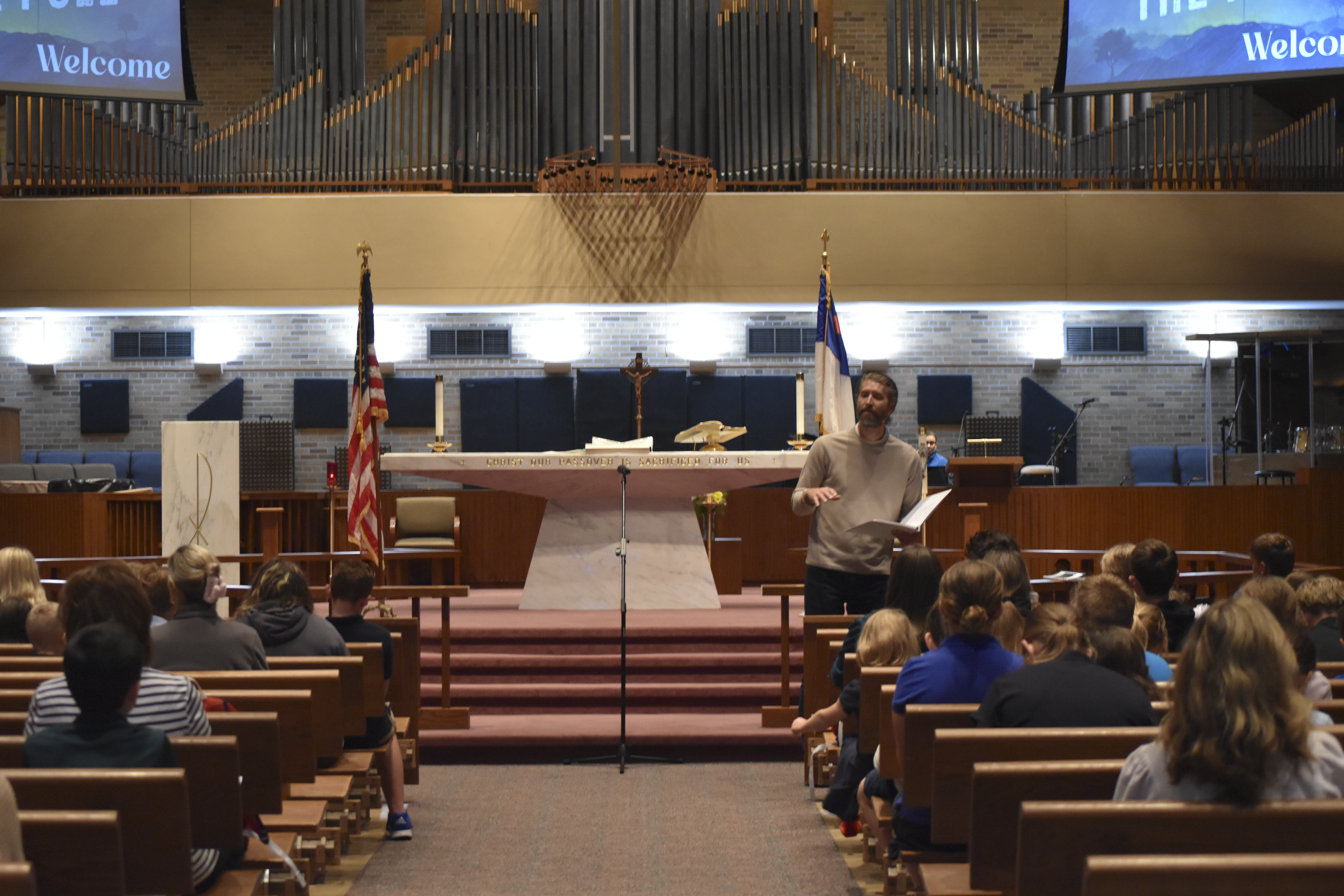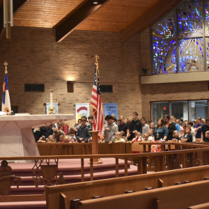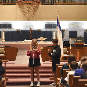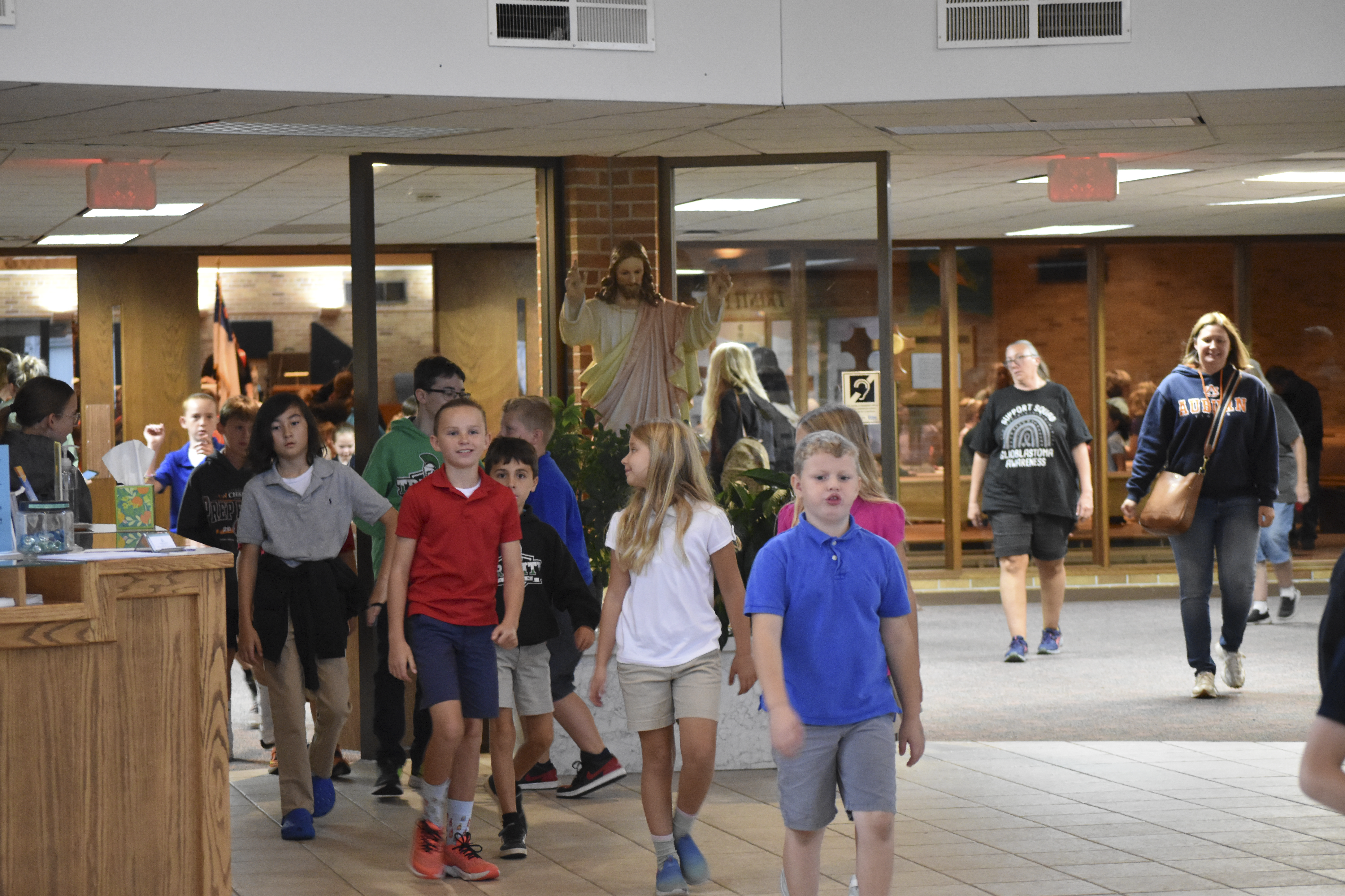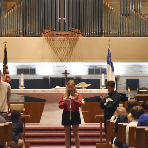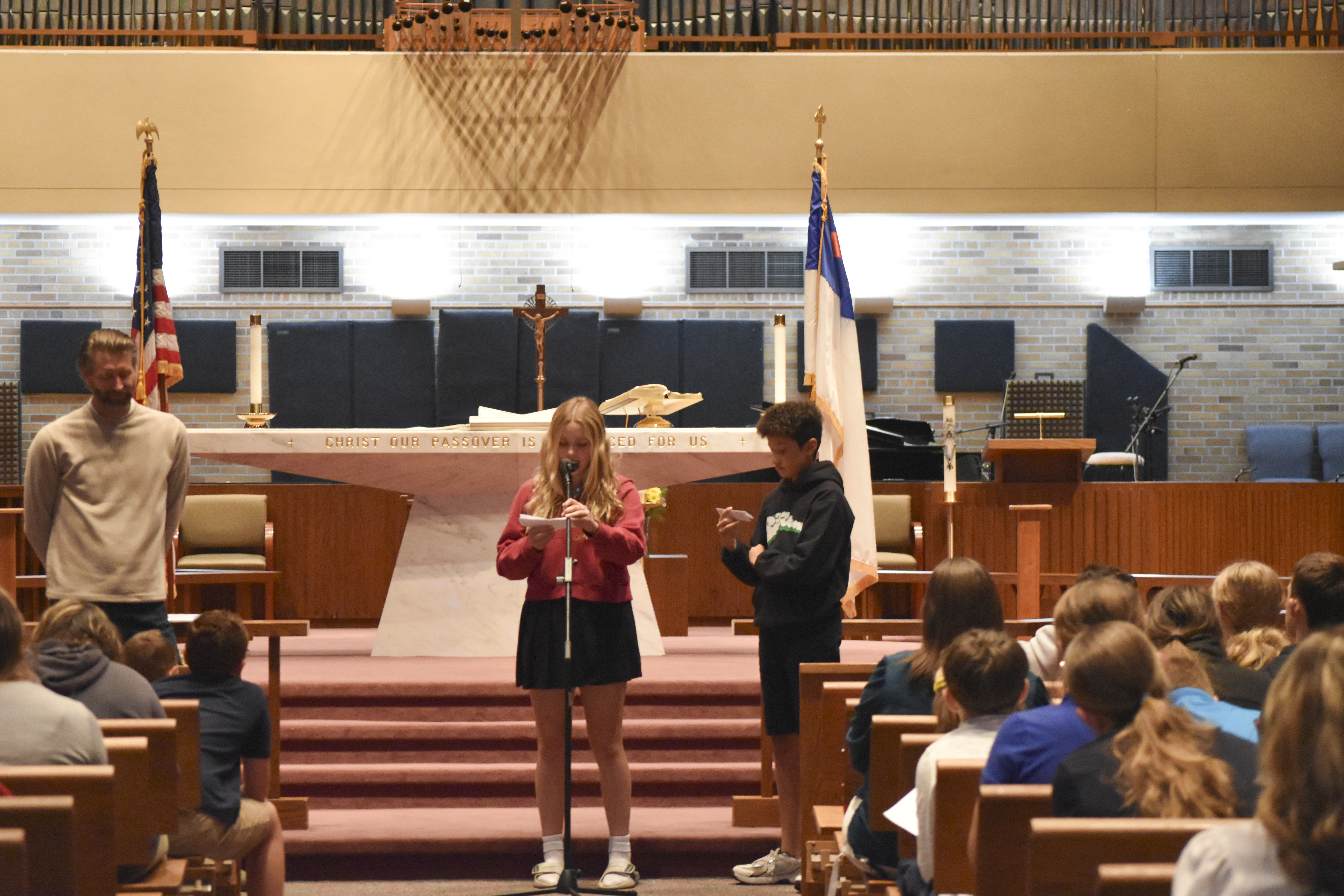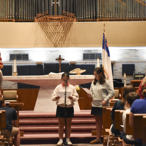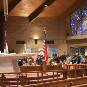 This year was no different, but, due to rain, the event was moved indoors. Students prayed for their friends, family, teachers, school and nation. The honor the flag with the Pledge of Allegience and are reminded that their Lutheran education affords them the right to pray whenever they want, even in the classroom.