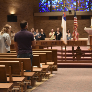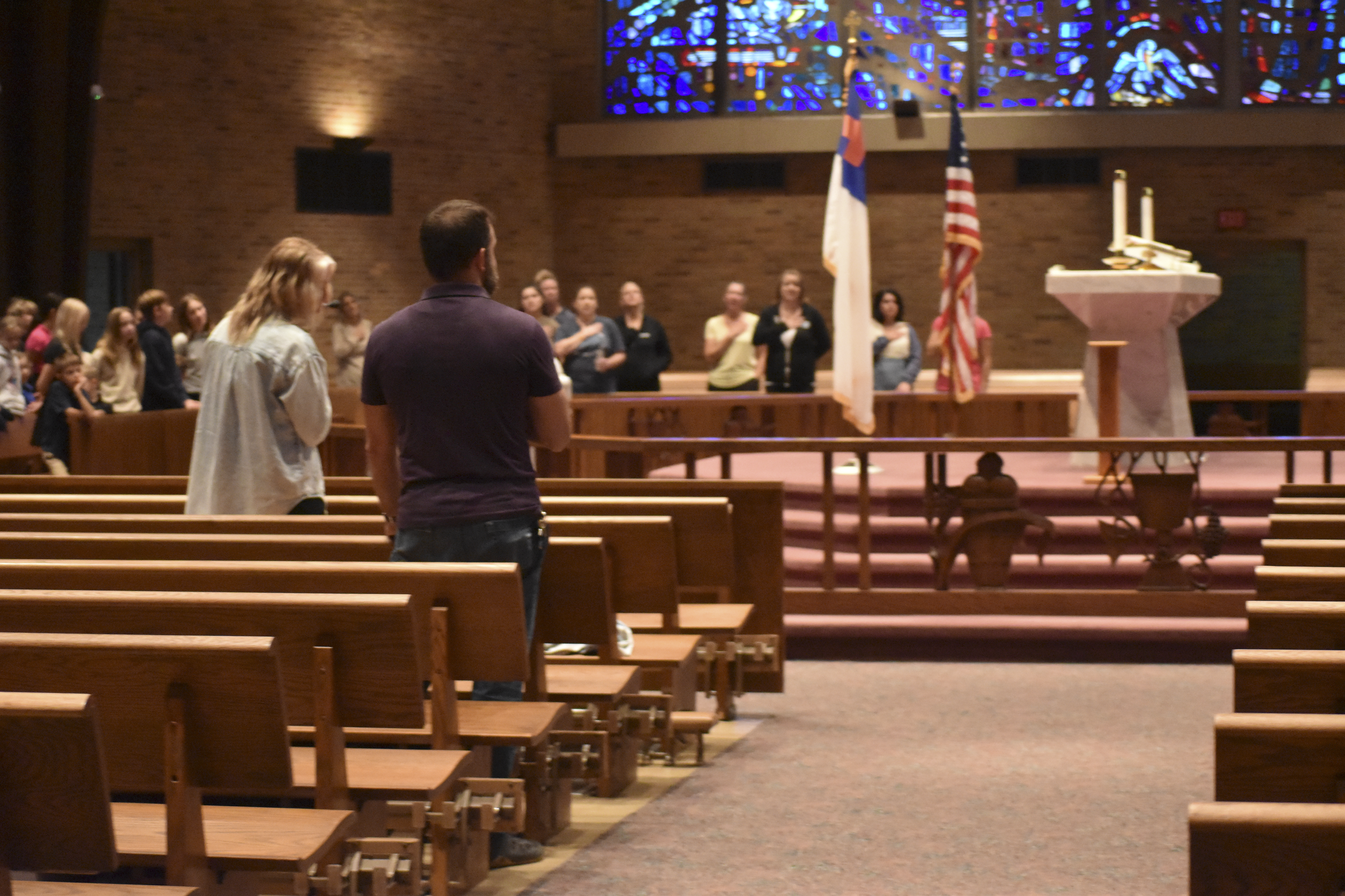 While Trinity students have the ability to pray together, worship and deepen their faith in the classroom, students from across the world don't have that ability. On Wednesday, Sept. 24, students from around the world gathered around the flag pole to pray, including Trinity students, parents and staff members. Rain may have forced the event indoors, the long-standing tradition continued with the special chapel service in the sanctuary.