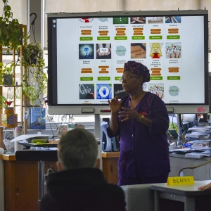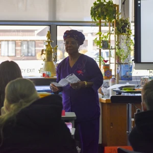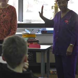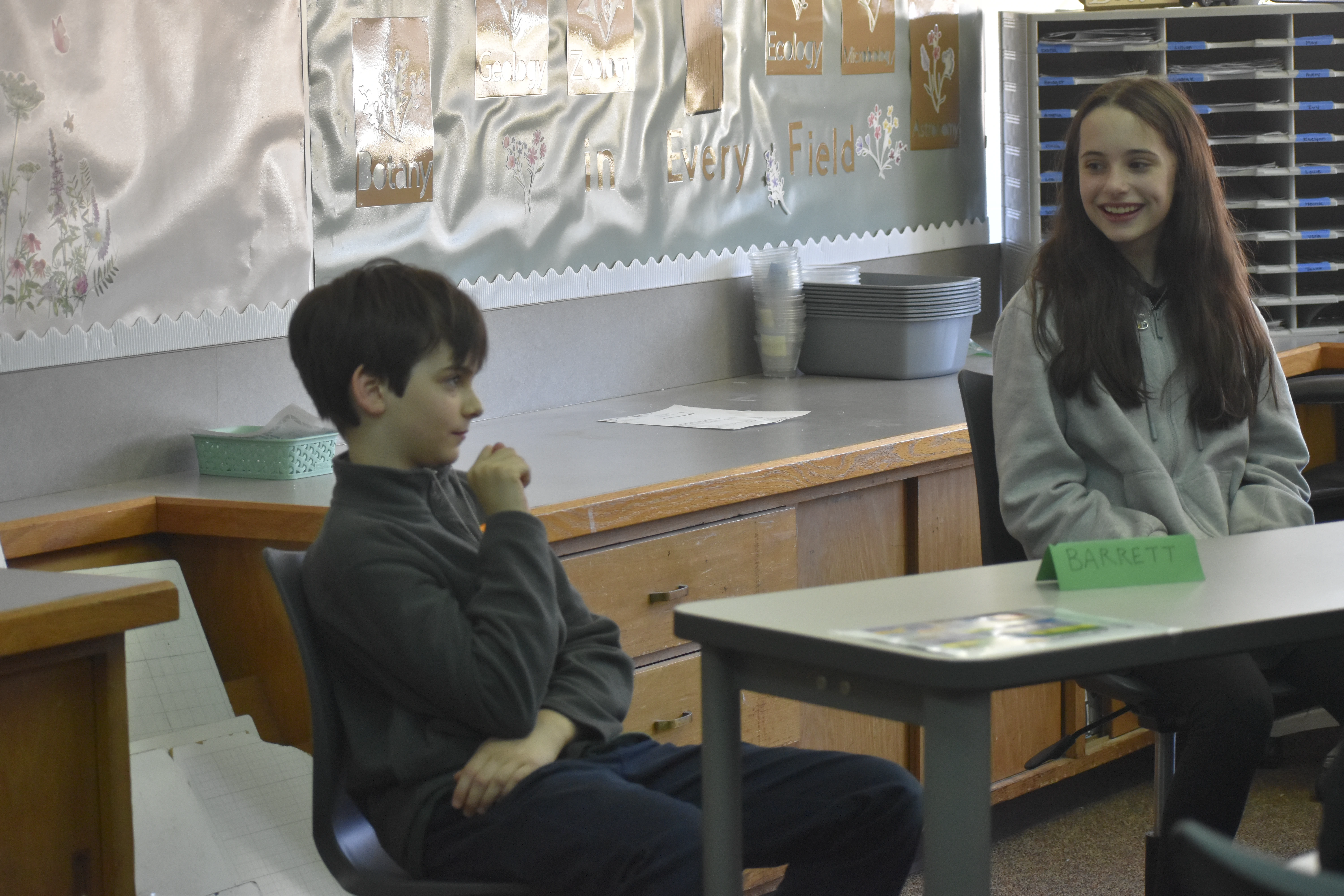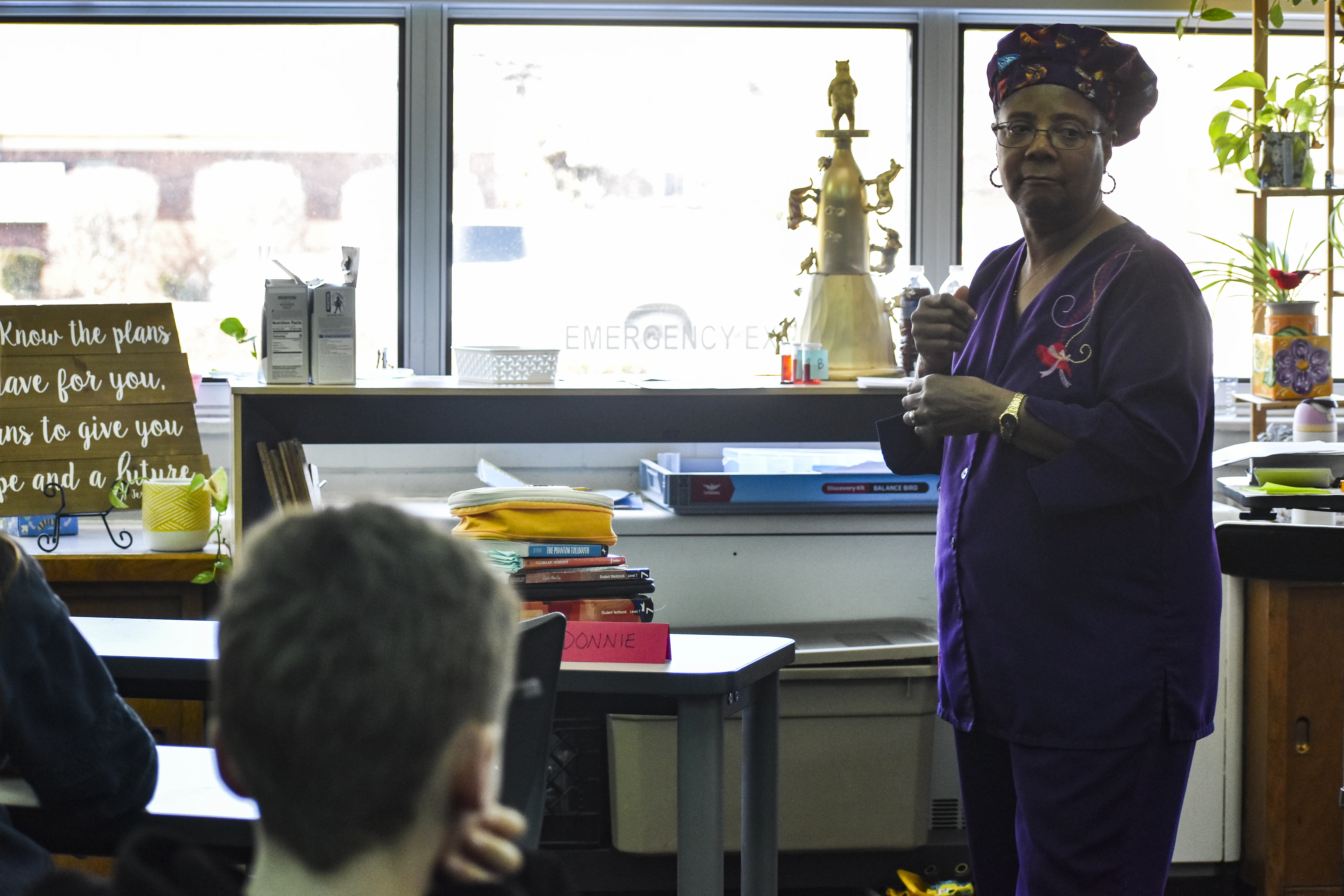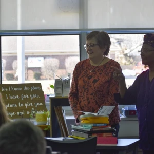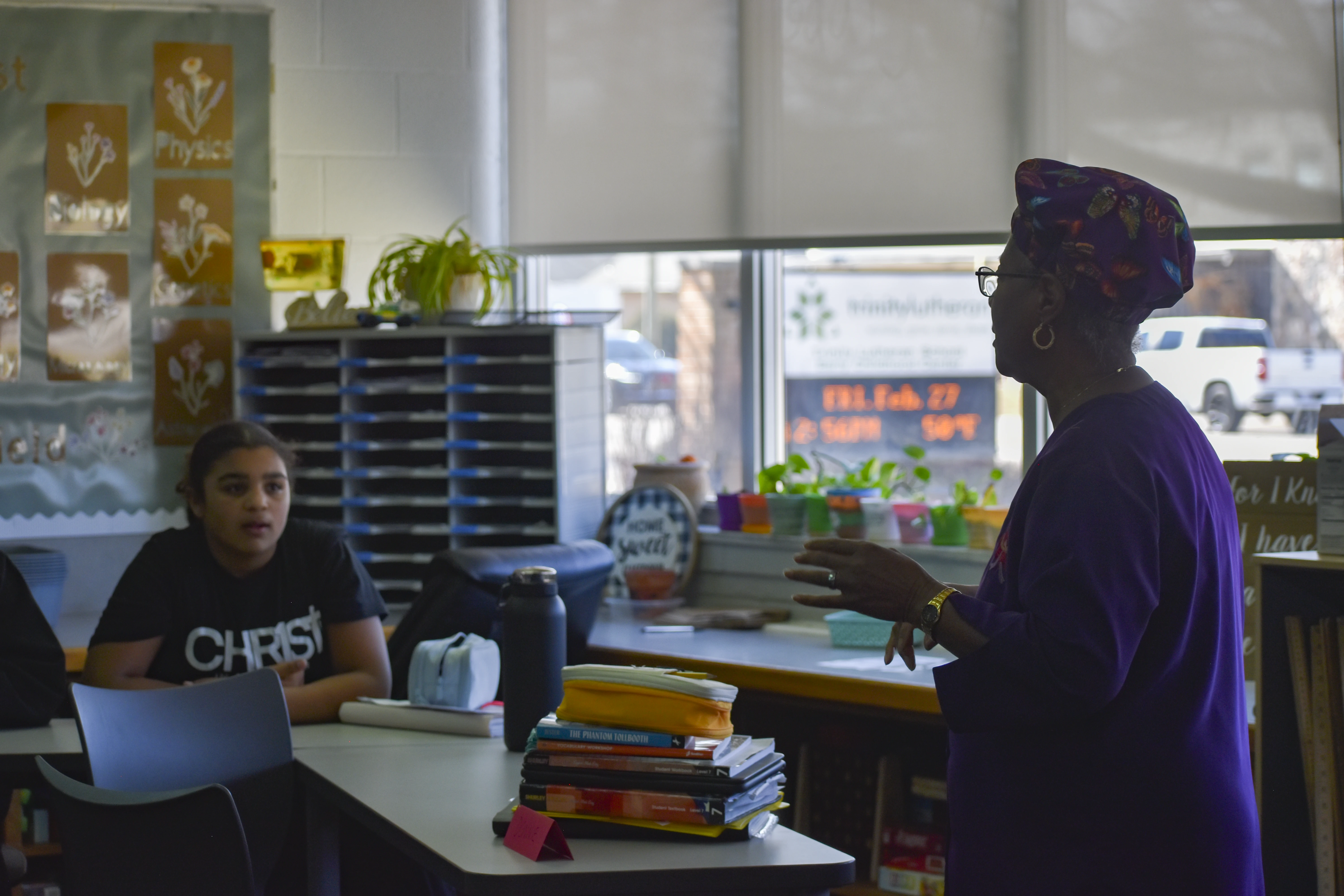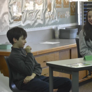 Since the beginning of the semester, students in the ASL elective have been working with retired Trinity teacher Joanne Brown to learn the language and practice communicating and even "singing" in sign language. On Wednesday, Feb. 26, the group performed the song "Our God Is an Awesome God" during chapel. Then they put their skills to use communicating with Wolff when she visited their class two days later.