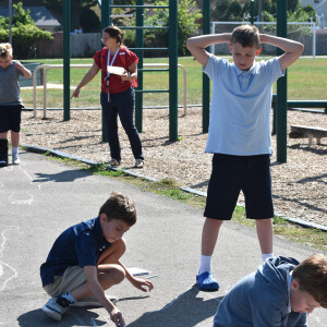 To deepen their investigation, the class returned to the track the next morning at a later time of day. Once again, they stood in the exact same locations as before, and their partners traced their shadows a second time using chalk. By comparing the different outlines, students could clearly see how the movement of the sun causes shadows to change. The experiment brought their science lesson to life and helped them better understand the relationship between the Earth, the sun, and light.